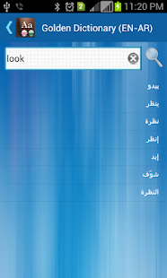 شامل مصمم ليكون رفيق من بحاجة كبيرة للرجوع إلى القاموس بدون عرقلة أو إبطاء لسير العمل. يعمل هذا البرنامج داخل أغلب أنظمة أندرويد